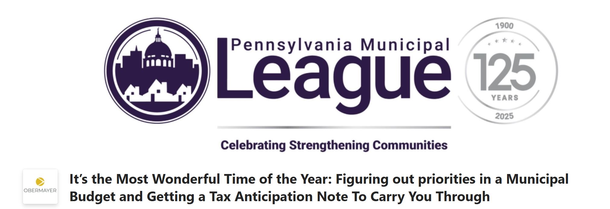 Obermayer attorneys David Nasatir, Derek Green, and Tom Wyatt will join the Pennsylvania Municipal League (PML) for a virtual discussion on Thursday, November 13, 2025, titled “It’s the Most Wonderful Time of the Year: Figuring Out Priorities in a Municipal Budget and Getting a Tax Anticipation Note to Carry You Through.”